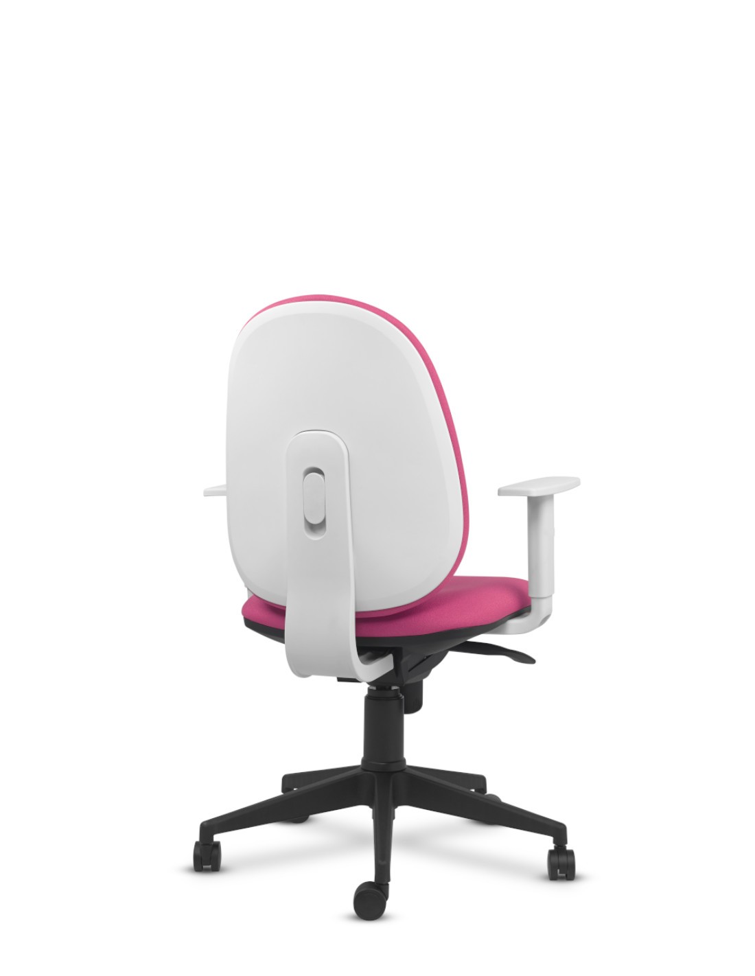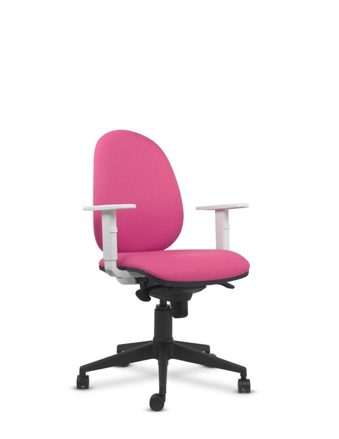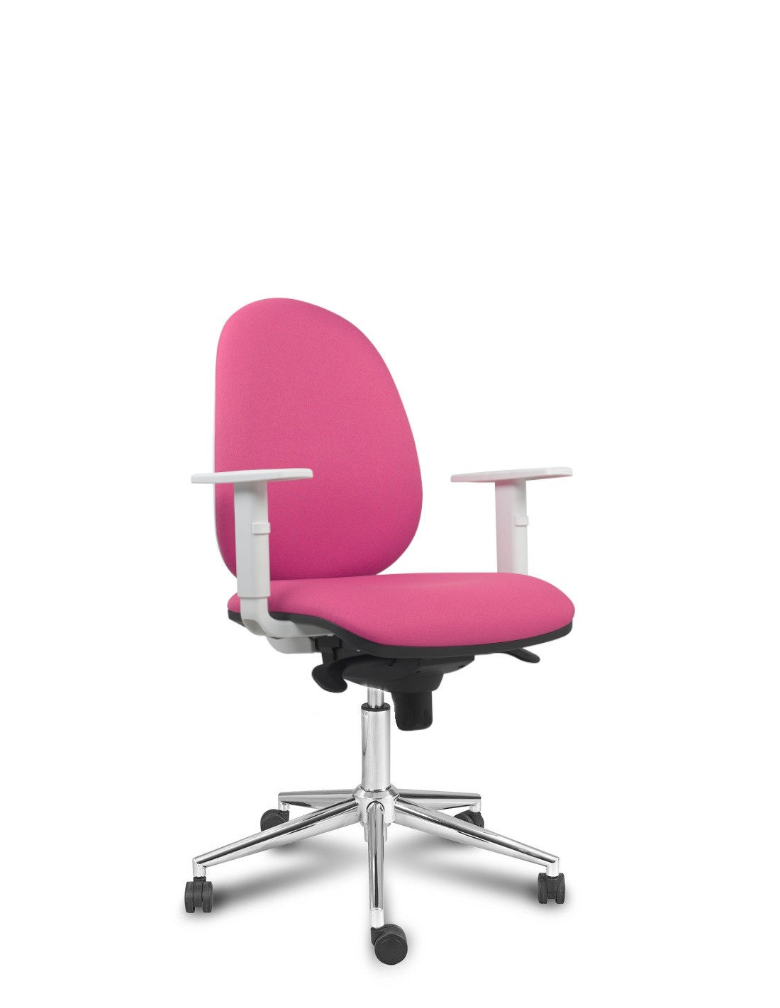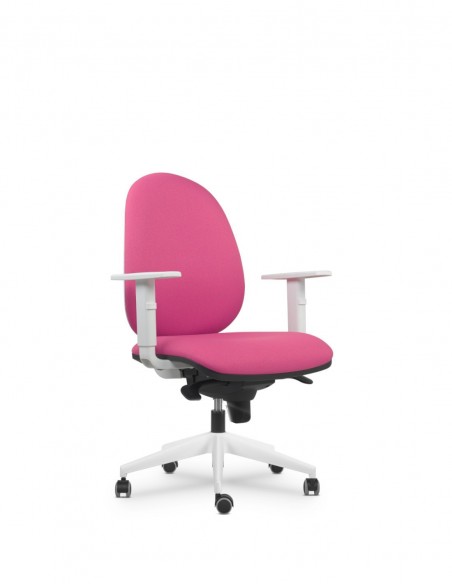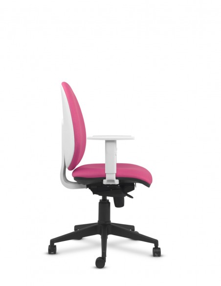 Silla Operativa Ash White Sistema Syncro. Tapizada colores a elegir. Asiento de goma flexible de alta densidad de 30 kgs/m3. Brazos Opcionales. Base Blanca Piramidal en Opción.