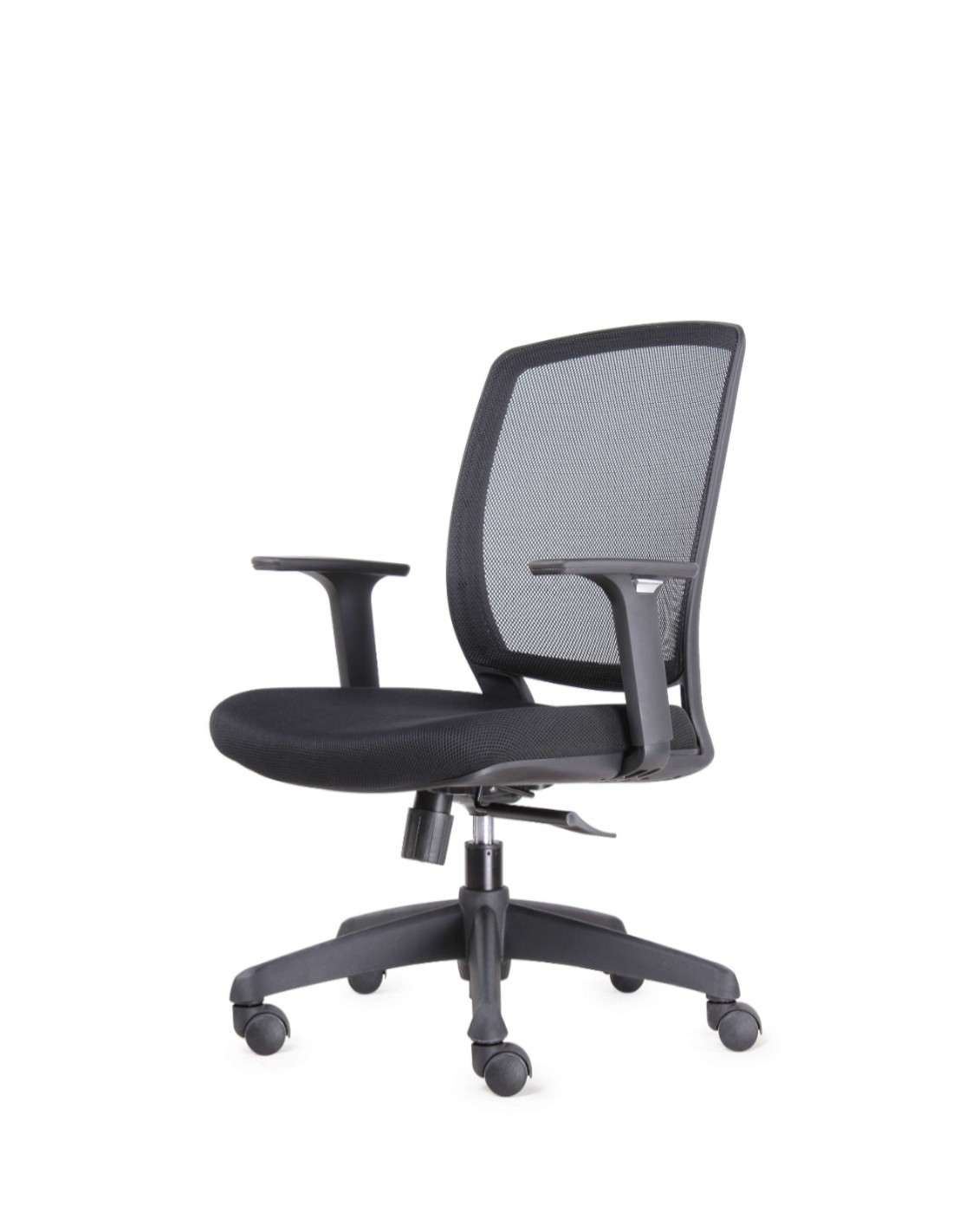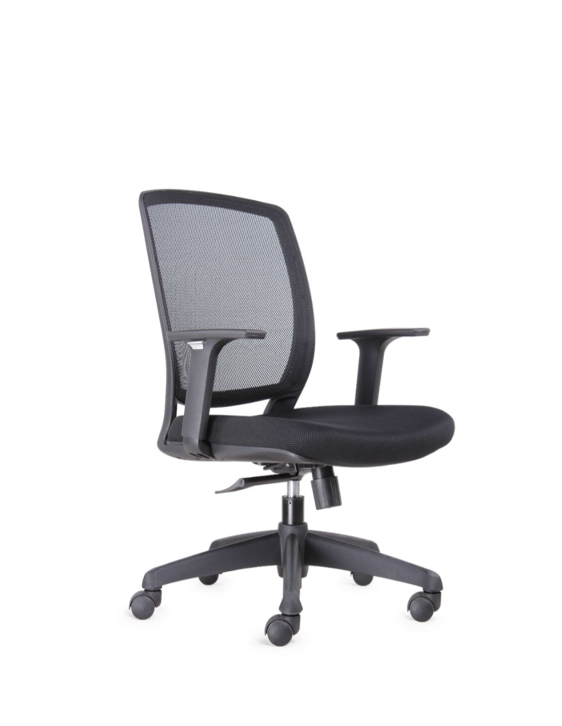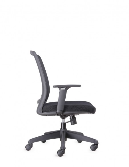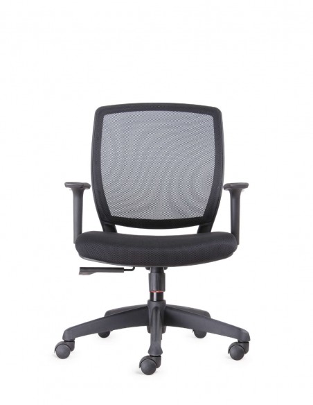 Silla Operativa en color negro. Respaldo Malla color negro, brazos regulables en altura integrados.Asiento de goma flexible de alta densidad de 40kgs/m3. Asiento Disponible en nuestra gama de tapizados