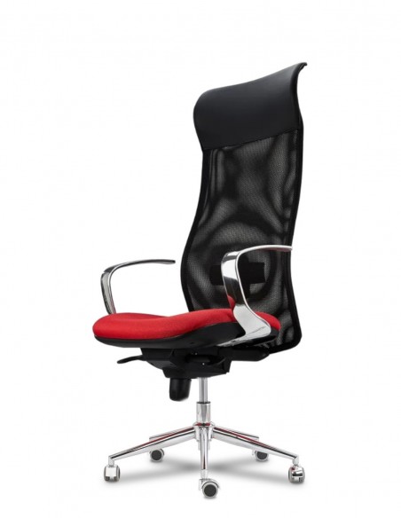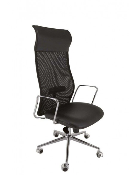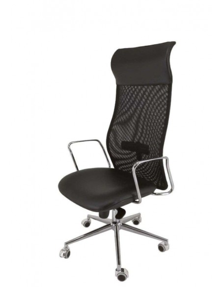 Silla Dirección Vesta Style Malla Alto. Sistema Basculante de Lux . Tapizado respaldo en Malla Negra con Cabecero en Polipiel Negro.